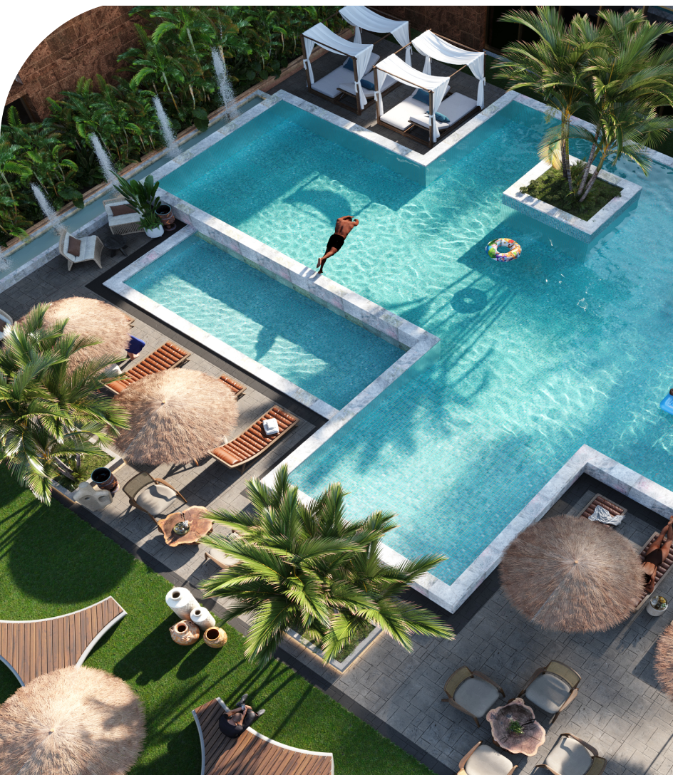 Take a refreshing dip in the outdoor pool or relax in the built in pool bar whilst you enjoy your favorite cocktails.