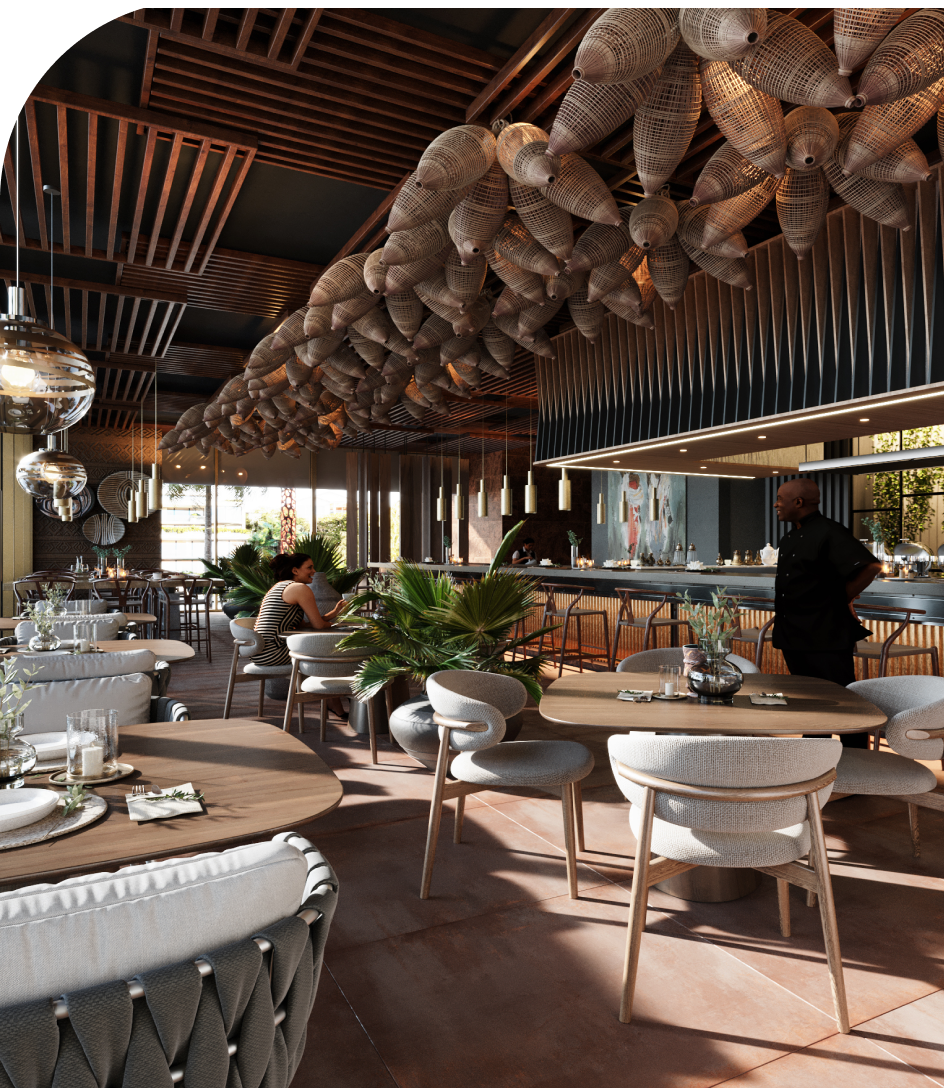 Exclusive tranquil spaces designed to provide a scenic and cosy setting with BBQ facilities and casual open-air seating designed for alfresco entertaining.